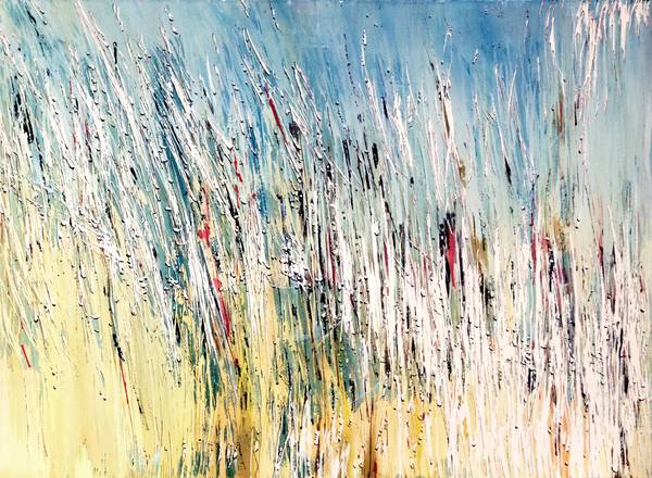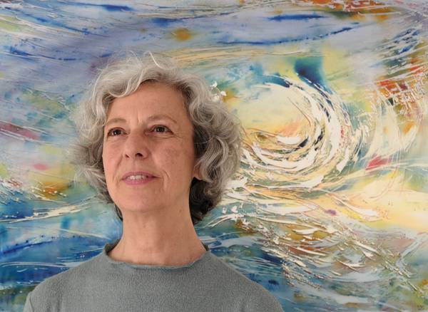 In her paintings there are lights and reflections, echoes and movement, the solid shapes turning into shadows, the foreground becoming background. She looks for the patterns and the rhythm and flow of nature. She loves the synergy and action of colours. Ad plays with transparency and layers, depth and volume. She looks for a path within the complexity and the movement of composition.