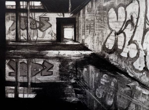 On the surface Jemma’s prints may appear dark and gloomy, after all, they are her visual interpretation of decay and dereliction found in post-industrial landscapes. However, look more closely and you’ll notice that there is life within these ruins where mother nature has started to reclaim our waste lands and new ecosystems have started to immerge.