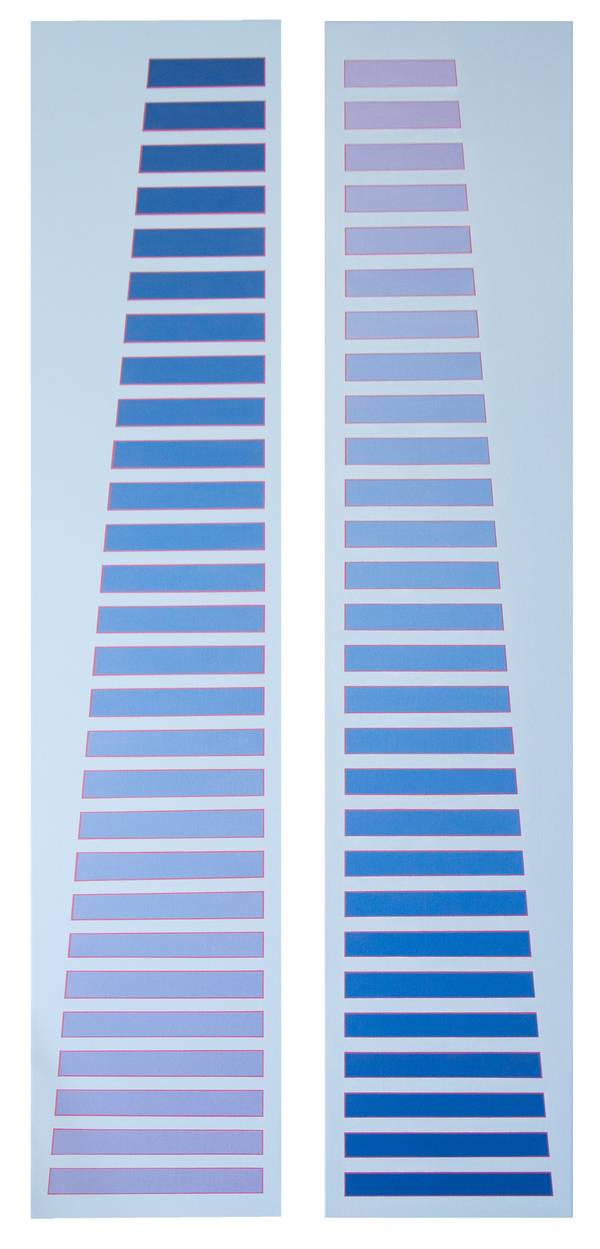 The combination of colour, line and shape is the most exciting and intriguing part of working, using seemingly repetitive shapes and lines can create calm or chaos, order or disorder, particular colours change the mood of the work, sometimes disorientating the eye or they can be works that allow the viewer time to stand still and contemplate and offer a breathing space from the chaos of life