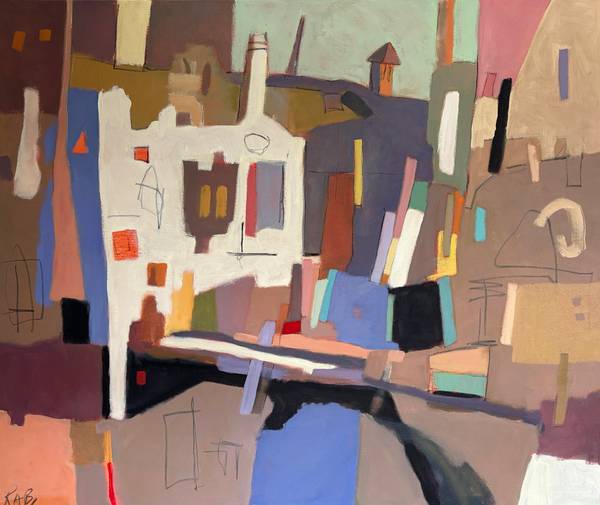 Barnard uses form, colour, and spatial tension not only as structural tools but as carriers of mood, memory, and meaning. Architectural elements are reduced, shifted, and re-weighted, blurring the line between place and feeling. This process-driven approach produces paintings that present both a compositional conundrum and an emotional encounter, underpinning a distinctive painterly language.