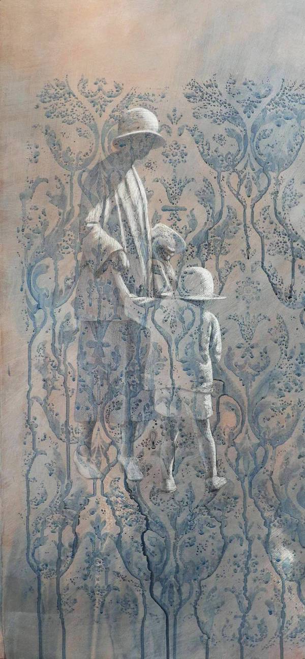 Ruth’s practice is based primarily in drawing and revolves around themes of absence and memory. Much of her work is concerned with the traces and memories of people which are left behind and still resonate when the people themselves have gone. Through drawings of empty interiors, items of clothing or faded, sepia photographs of an ancestor, she explores the borderland between absence and presence, the familiar and the strange and the idea that walls hold stories and presences within them.
