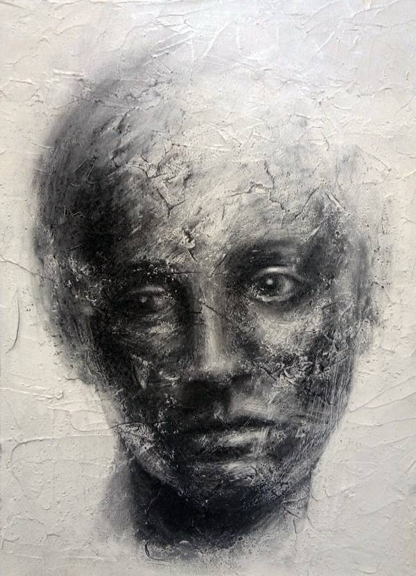 Ruth works mostly in charcoal or mixed media, using traditional materials but often using unconventional techniques, including a method of frottage which she has developed over a number of years.