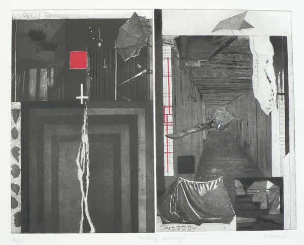 - HIBBARD "nobody's somebody" Hardground etching and aquatint + Watercolour 60 x 69 x 1 cm